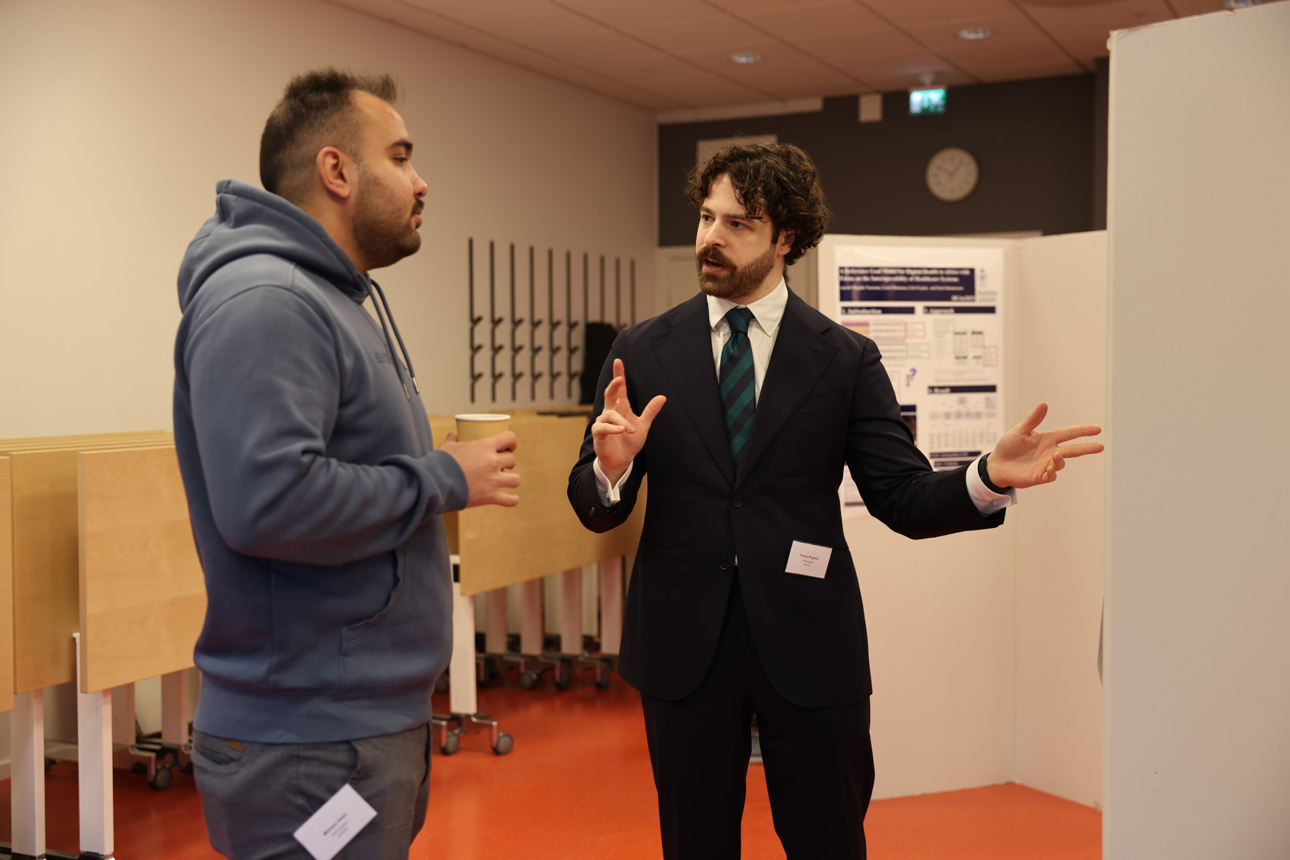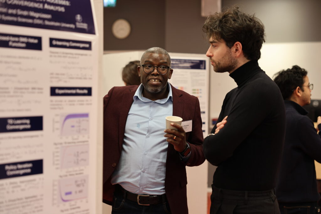 PhD Day 2026 was centred around sharing research and the conversations it sparks. The programme included two poster sessions, one in the morning and one in the afternoon. Each session began with short pitches, giving everyone a quick overview before moving into poster discussions and questions in a more informal setting. Alongside PhD projects, some master’s students also took part by presenting their thesis work, and we were happy to welcome a few participants from outside DSV as well.